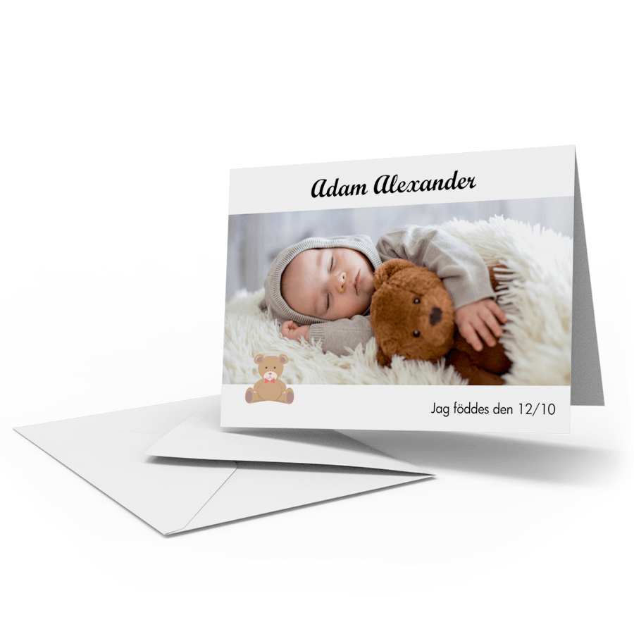 Ett bebiskort är ett enkelt och kärleksfullt sätt att meddela att en ny familjemedlem har fötts. Ett personligt fotokort med en bild av barnet kan till exempel användas som inbjudan till ett dop.