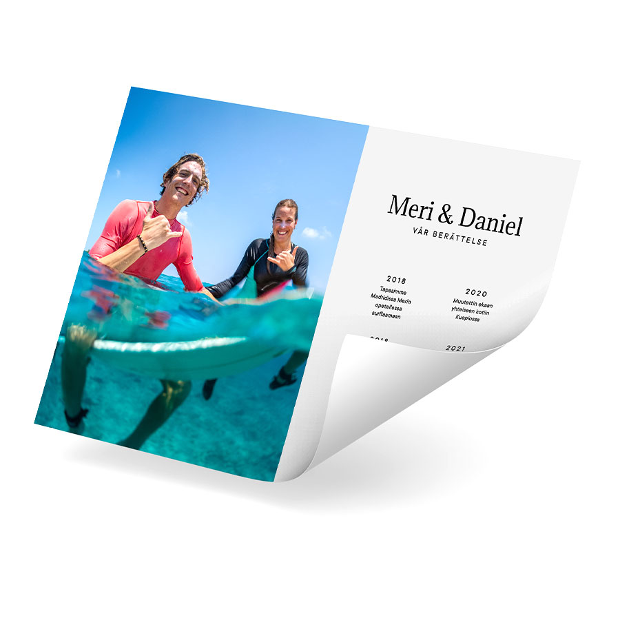 Låt er kärlekshistoria synas i hela festlokalen med meningsfulla fotoprodukter. Från stilfulla posters till väggdekorationer och en vackert skapad fotobok – skapa värme, personlighet och minnen som består.