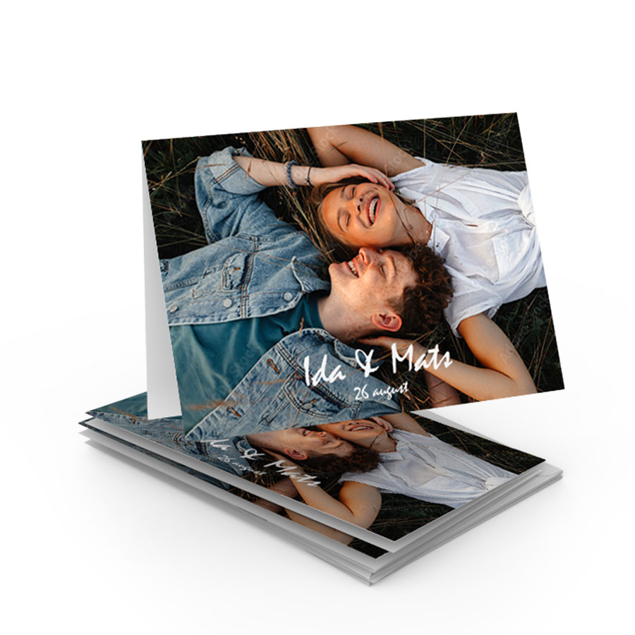 Skapa en snyggt sammanhållen uppsättning bröllopskort med enkelhet. Från Save the Date till tackkort – designa allt med dina egna bilder och ge er dag en personlig och minnesvärd prägel.
