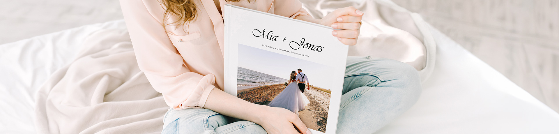 Gör en berättande fotobok om bröllopsdagen och förberedelserna. Återupplev stunderna och bevara minnena i ett vackert format.