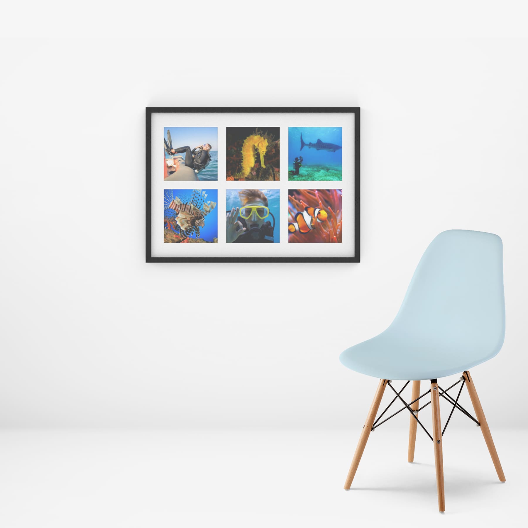 Fotokollage med fin träram färdig för väggen