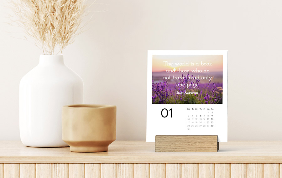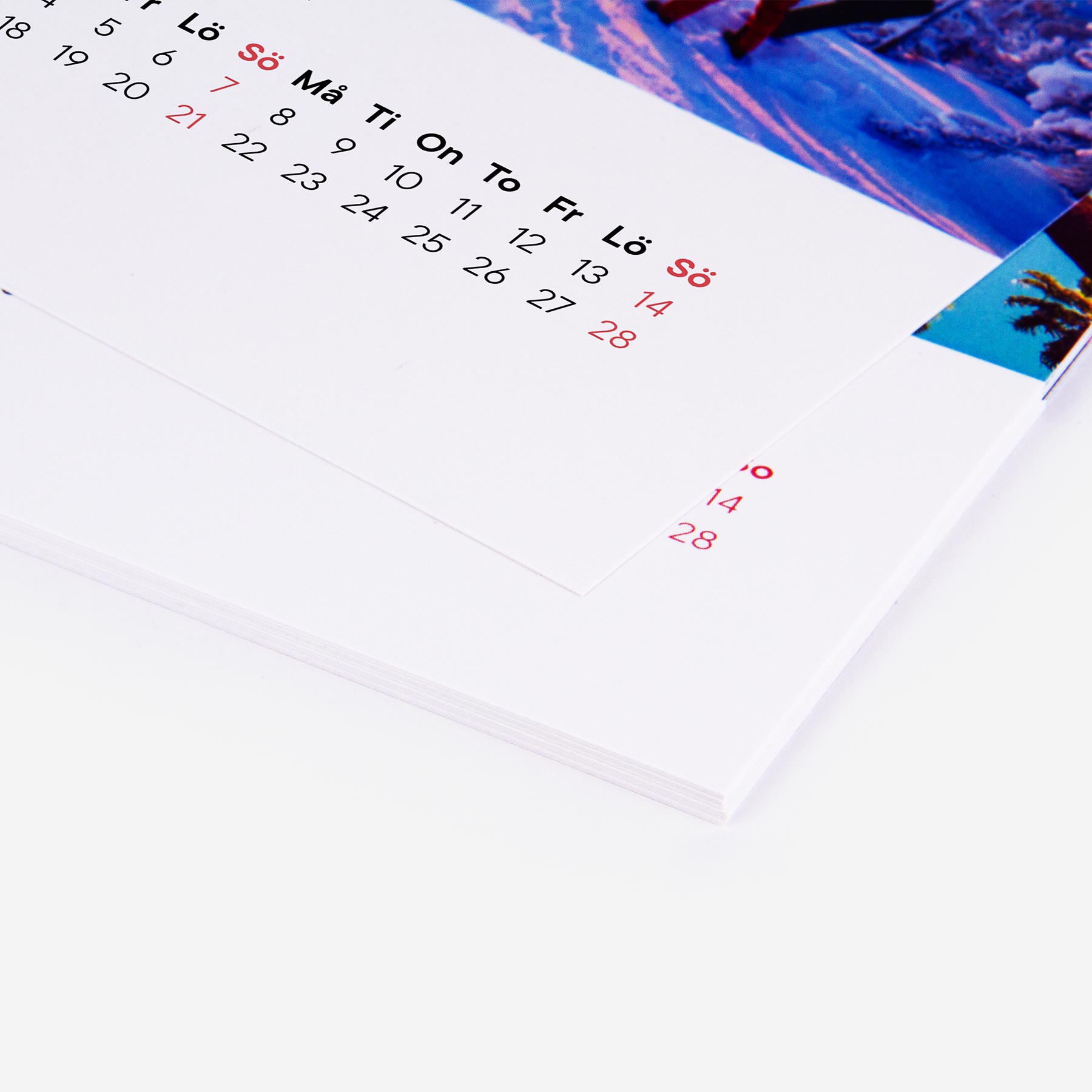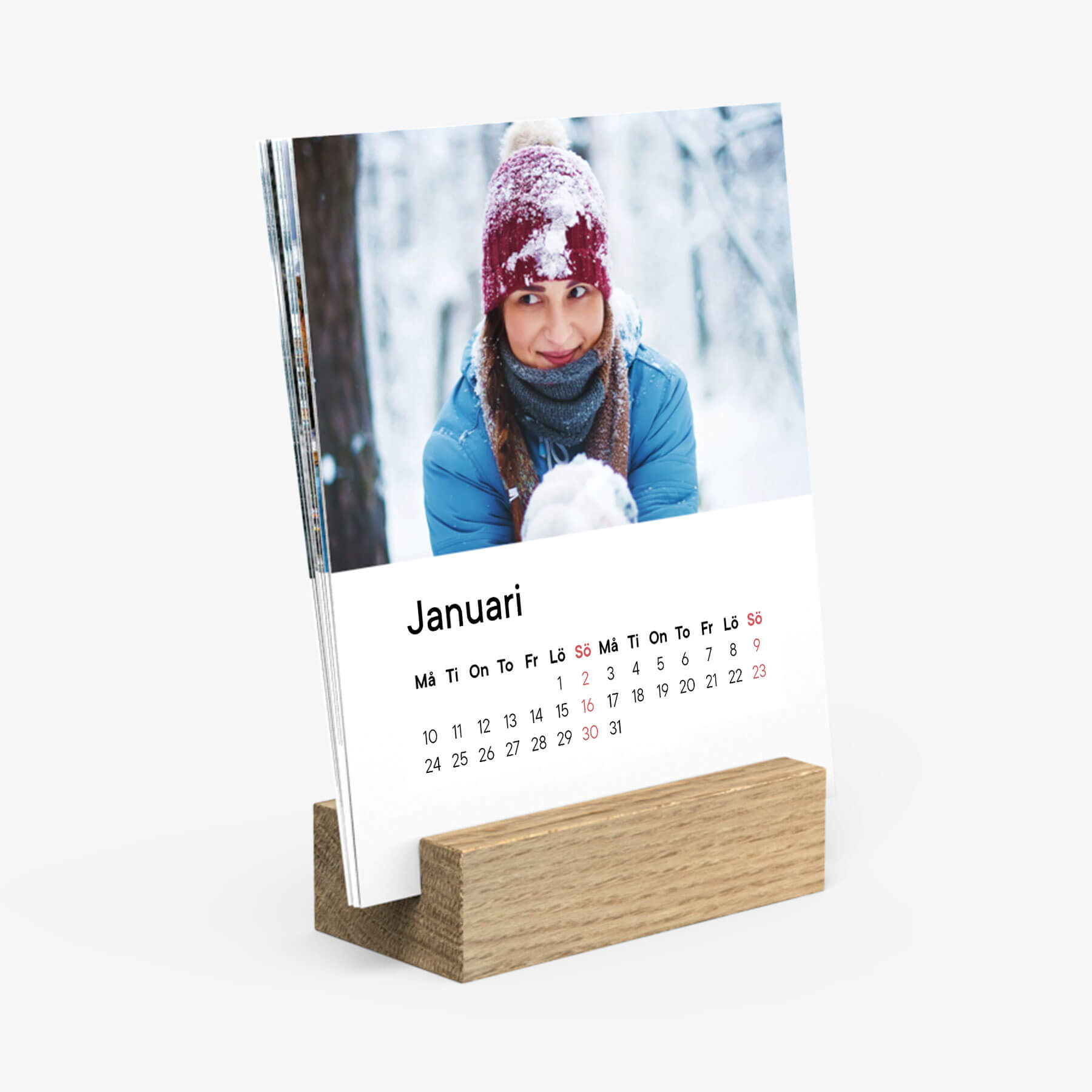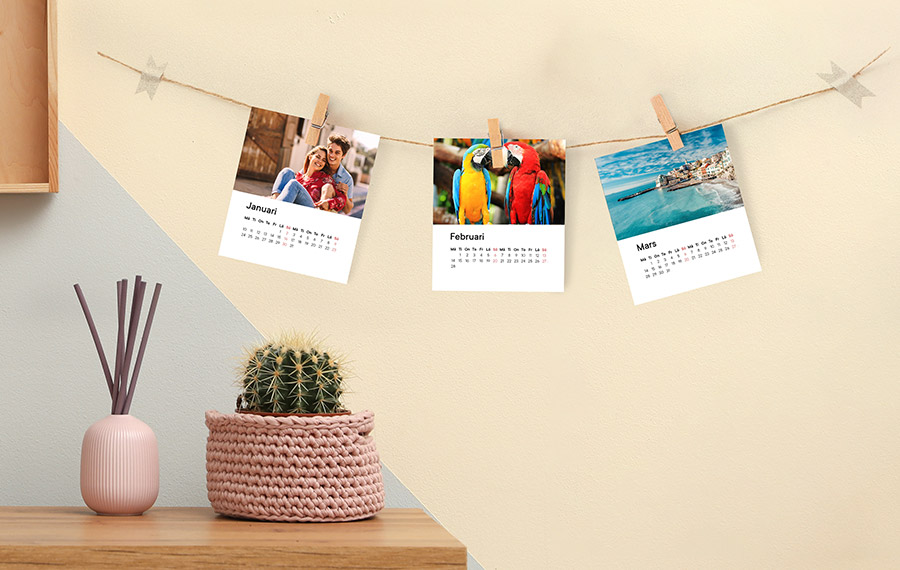 Vi trycker vart och ett av månadskorten och omslaget till din bordskalender i högsta kvalitet vilket ger dina bilder lyster och rika färger. Det träfria obestrukna 290 g/m2 papperet är mycket robust vilket ger det en unik kvalitetskänsla. Välj vilken månad du vill starta din kalender med och njut av den i 12 månader oavsett vilken månad du beställer kalendern.