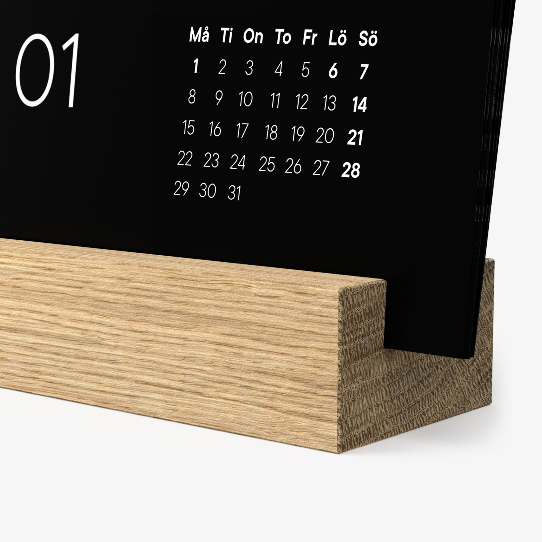 Din bordskalender med träblock är elegant och hållbar. Träblocket är tillverkat av ek och korten är gjorda av träfritt naturpapper. Kalendern har varken plast eller spiralinbindning. Materialen i hög kvalitet garanterar en lång livslängd för din bordskalender.
