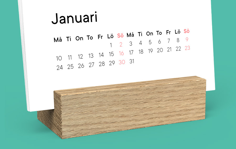 Vi trycker vart och ett av månadskorten och omslaget till din bordskalender i högsta kvalitet vilket ger dina bilder lyster och rika färger. Det träfria obestrukna 290 g/m2 papperet är mycket robust vilket ger det en unik kvalitetskänsla. Välj vilken månad du vill starta din kalender med och njut av den i 12 månader oavsett vilken månad du beställer kalendern.