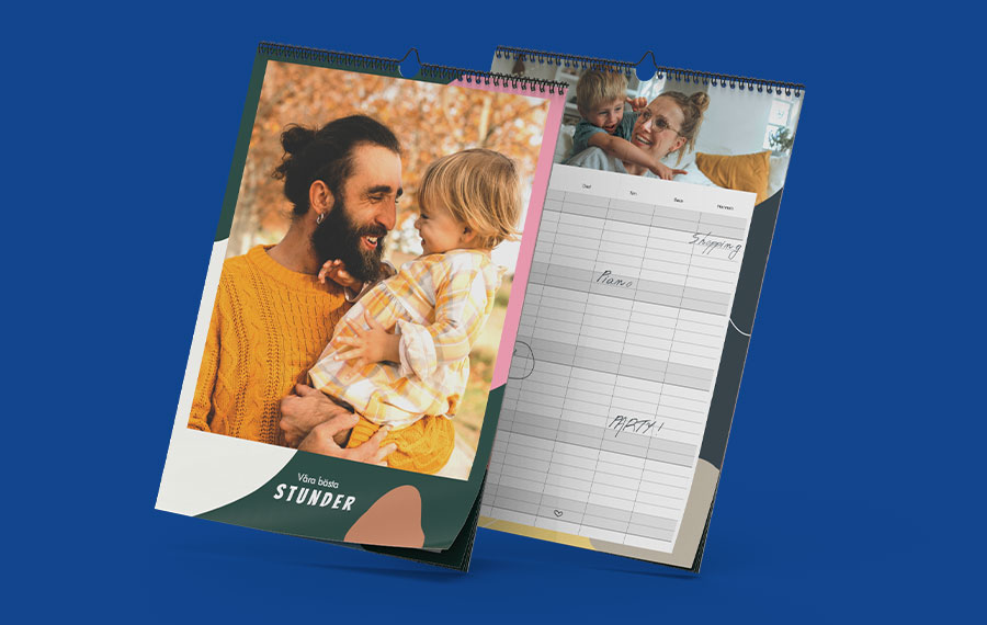 Kommande program klart! Familjekalendern har mycket plats för viktiga datum och fem kolumner som du bekvämt kan namnge redan då du beställer almanackan. Sidorna i kalendern kan också innehålla många underbara gemensamma minnen som kommer att glädja hela familjen.
