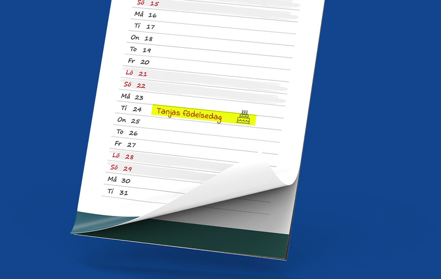 Kökskalendern är liten, bara 15 cm bred, men med tanke på storleken har den gott om plats för anteckningar. I den kompakta kalendern har du de viktigaste anteckningarna och födelsedagarna synliga.