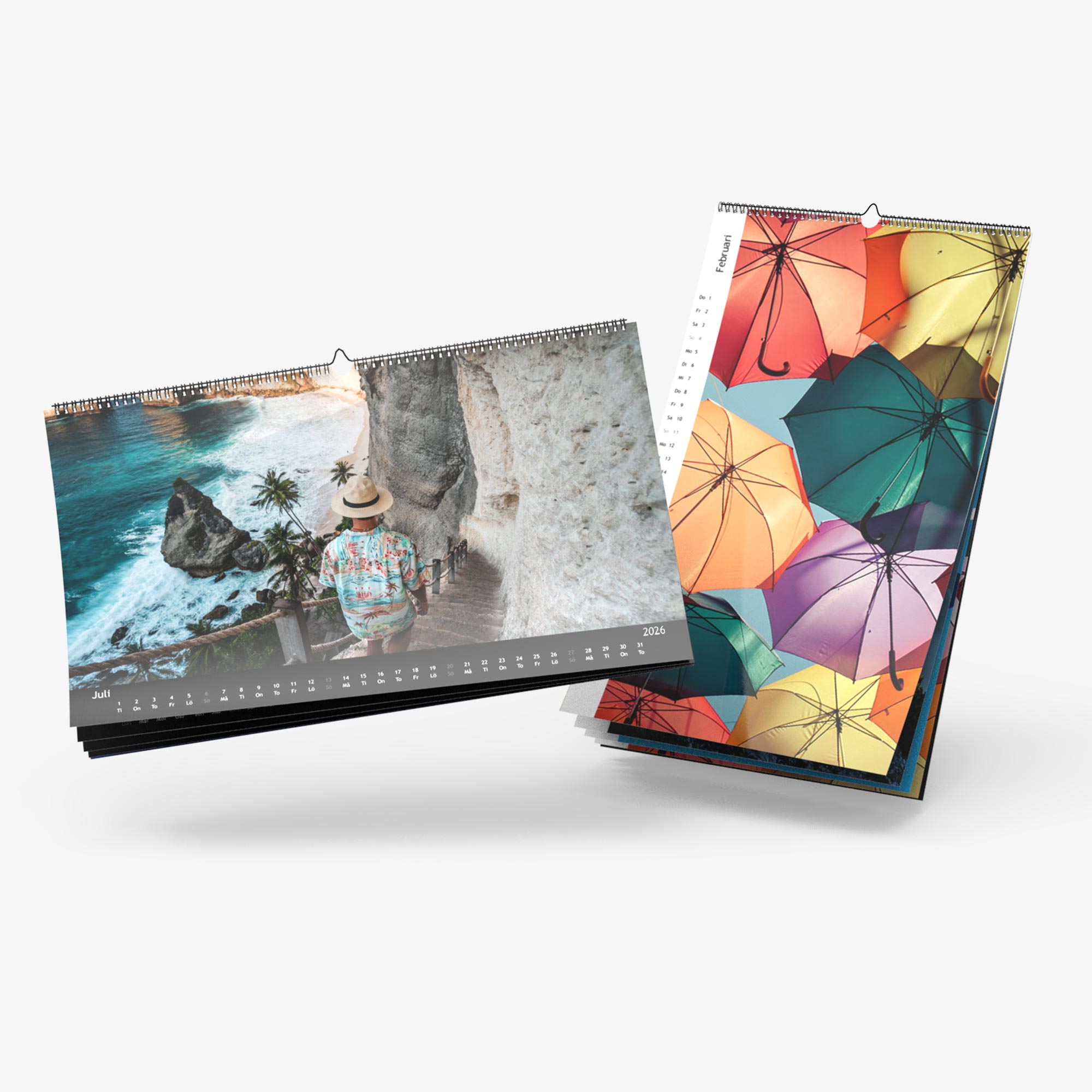 Visa dina favoritbilder i stort format alltså på finast möjliga sätt. Panoramakalendern är ett riktigt blickfång med en sidstorlek på 60 x 35 cm. Du kan välja en design där du ger hela sidan till en bra bild eller en design där du gör ett intressant kollage av flera bilder.