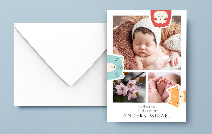 Ett stort urval av olika layouts och designs gör det enklare att göra ditt eget vikta kort. Våra designs har olika teman, fester, bildstorlekar, hälsningar, ramar, färger... Du kan få texten förtryckt på kortet eller så kan du skriva in texten för hand, till exempel din egen signatur på ett tackkort eller inbjudan.