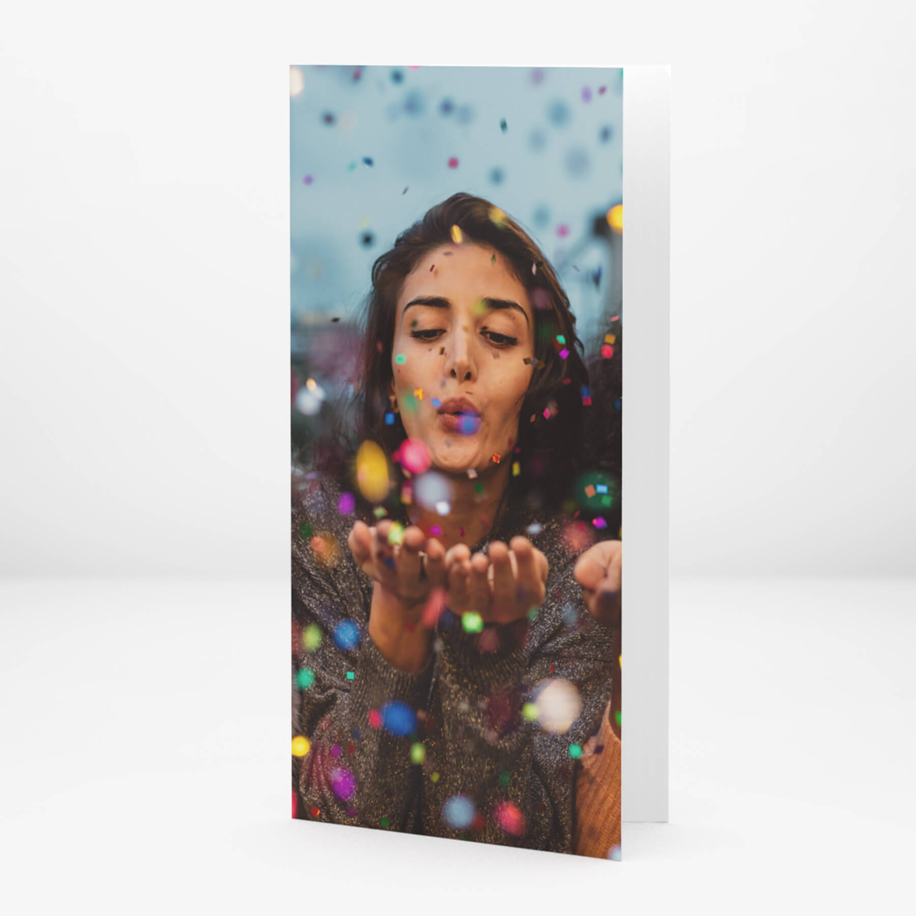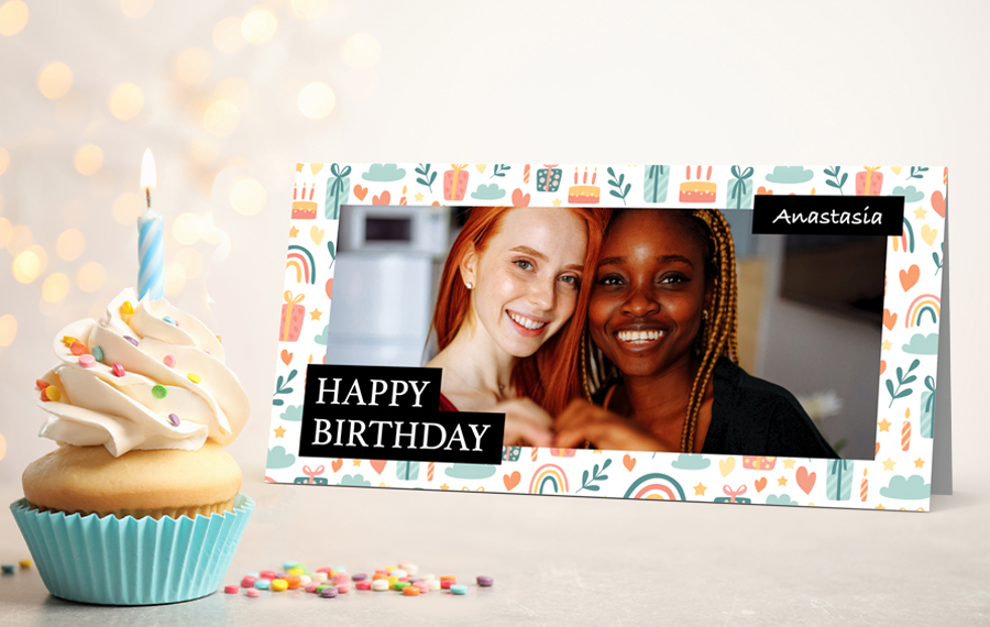 Ett tackkort för en trevlig fest, en personlig inbjudan till alla vänner som står dig nära, ett vackert minne med olika bilder... Beställ snygga vikta kort, ett eller så många du behöver. Kortets bilder och texter är lätta att anpassa för mottagaren.