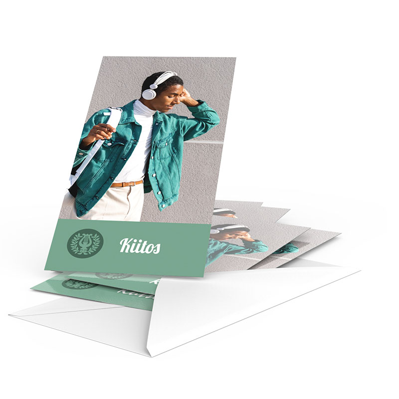 Snygga tackkort för examens- och studentfester skapas av en bild där festhjältens personlighet kan visas upp. Med eller utan hatt – med ett tackkort minns du alla som firade din student.