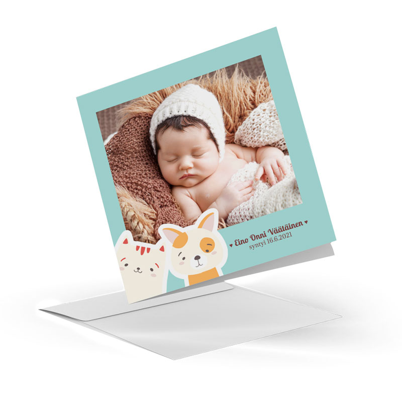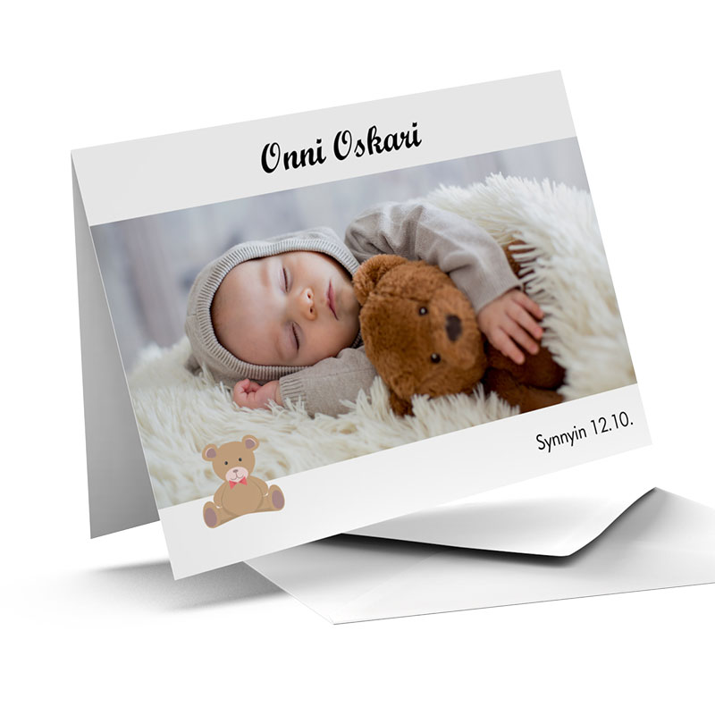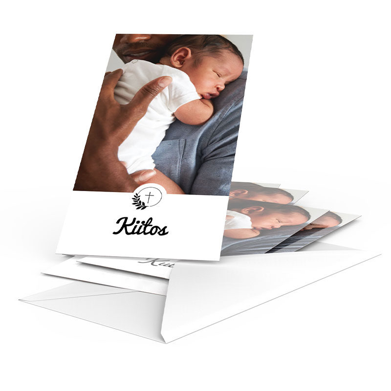 Dop eller namngivningsfest är ett barns första egna fest. Under dagen tas många bilder med föräldrar och faddrar. Tacka för dopfesten med ett tackkort som fångar bebisens och festgästernas glada stunder.